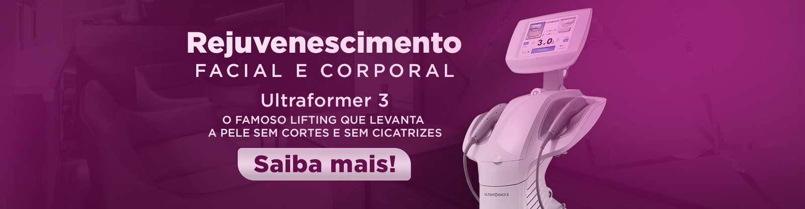 Ideal para combate a flacidez, o Ultraformer III é um ultrassom microfocado de alta tecnologia que promove um lifitng facial e traz mais firmeza para a pele, resultando em uma aparência muito mais jovem. Você vê resultados imediatos, logo após a primeira sessão. Mas, além disso, o resultado é sustentável e duradouro por cerca de 10 meses.