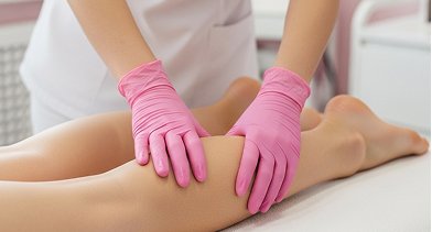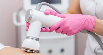 Massagem profunda com equipamento que estimula a circulação, combatendo celulite e gordura localizada.