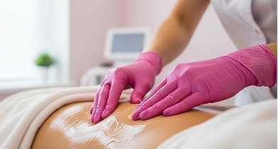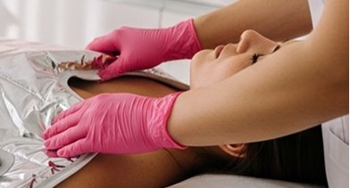 Técnica de aquecimento com cremes especiais para desintoxicar, desinchar e melhorar a elasticidade da pele.